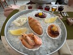 Пришли поужинать, заказали две одинаковых порции креветок. Все пережаренные, они должны быть розмарином и чесноком, чеснок не чувствуется совсем, порции принесли разные по количеству креветок, мою положили моему молодому человеку. Были на день раньше, очень вкусные салат из тёплой оленины и нормальной борщ, но эти креветки испортили всё ощущение, в сам ресторан надо одеваться теплее, из окон очень дует, из минусов: на втором этаже видна вся пыль на шкафах, с люстры до стены свисает паутина… но КРЕВЕТКИ - я плакалъ ((