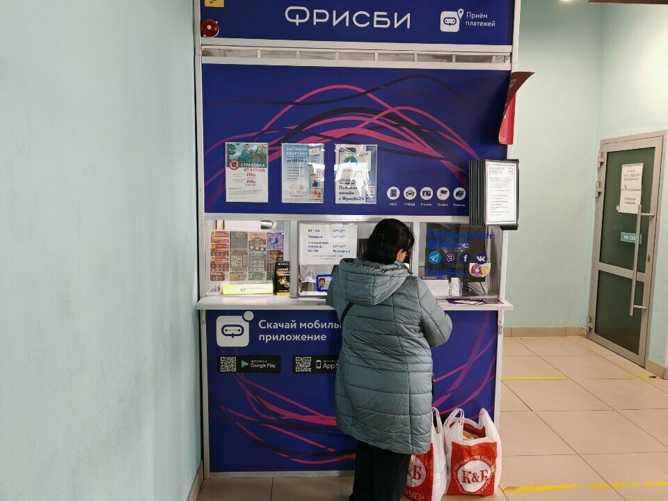 Вечная очередь...точка находится прямо напротив дверей, толпы людей ходят в центр и из него, а тут ещё стоит огромная очередь желающих оплатить , вобщем люди мешают друг другу