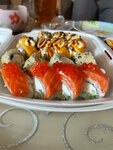 Заказываю ни первый раз,и всегда всё отлично) Порции большие,начинки много,рыба сверху бомба 💣 Особенно хочется отметить имбирь,не крашенный,пряный,в меру острый) Ценителям паназиатской кухни рекомендую!😎 Успехов Вам!