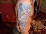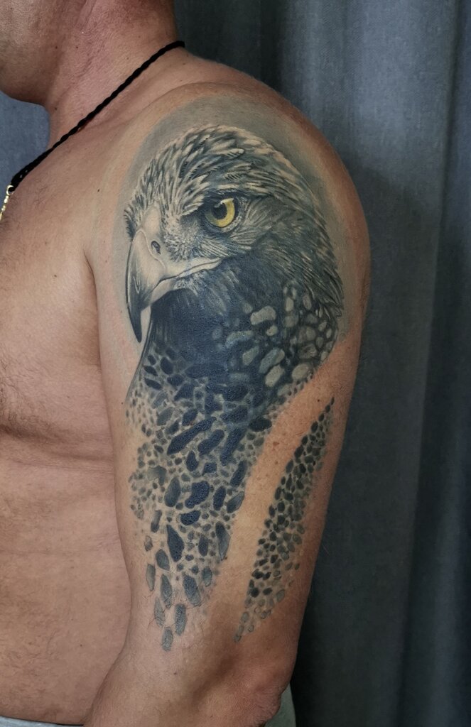 Совершенно случайно набрел в интернете на работы Константина. Понравился его стиль, но вся беда была в том, что я не знал, чего именно хочу. Не было ни эскиза, ни каких-либо идей. Просто хотелось сову набить, ироничную такую сову. Обратился к Константину, и был приятно удивлён! Внимательно выслушав мою скромную идею, он создал эскиз, который я даже не ожидал увидеть) Приступили к работе. Уютная атмосфера, никакого напряга и неудобства... Два с половиной сеанса прошли без проблем и вот, наконец, на моём плече красуется шедевр) В процессе заживления тату не раз обращался за советами и всегда получал развёрнутый ответ👍 Подведём итог:шикарная работа умелого мастера и только положительные эмоции и впечатления👏 когда окончательно заживёт тату, выложу конечный результат) Браво мастеру и огромное спасибо)