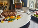 A chic restaurant. We had breakfast, lunch and dinner there. Everything is very tasty. The interior is magnificent. The calm atmosphere is conducive to a leisurely meal. Very beautiful dishes. The staff is wonderful, very attentive service. As it should be in such establishments. Thank you.