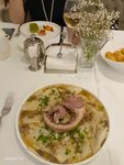 A grand, majestic restaurant, a beautiful interior and halls filled with art and creativity of unique personalities. This restaurant hosts great people, including Putin and other presidents. The staff is very attentive and polite. We were on a day when the first floor was occupied by a special wedding service, over 100 people. We were content with the second floor, where live music was playing and there was a calm atmosphere. On weekdays, the restaurant is quite deserted, creating a feeling of lack of demand. Nevertheless, we managed to enjoy the wonderful dishes of local cuisine. I would like to mention the grilled dishes, fish and Dostoevsky's books in the library! Everything is as fresh and delicious as possible. The prices are too high, not for every day, but it's perfect for a special event!
