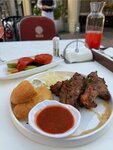 The restaurant is expensive and rich. If the goal is to take beautiful photos and get aesthetic pleasure, then it's definitely worth going. But I have a very pragmatic attitude towards restaurants, especially with such prices - I just want to have a delicious meal and get gastronomic pleasure. And in this regard, the Frunze restaurant is a big disappointment. I ordered deep-fried eggplant, generally not bad, I met it much tastier, but 4 out of 5 can be delivered. But for the main course, I asked for the waiter's recommendation - they offered lamb on the bone on the fire (I can inaccurately write the name of the dish). And it was a terrible horror. 4 pieces: one is severely overdried, one on the contrary is undercooked, the other two are also not in perfect condition. I'm sorry for the details, I had to spit out the meat several times because it turned into non-chewable tar. In total, if you want to eat delicious food, I strongly do not recommend it.