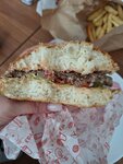 В бургерах с говяжьей котлетой несколько раз был сырой фарш и много жил.. все остальное неплохое, но и по ценам не очень доступно. Дополню отзыв. Вчера брала бургеры, попросила чтобы картошка по деревенски была не сырая внутри, в итоге она была сгоревшая, так же попросила прожарить котлету хорошо.. бургеры на вкус не плохие, но котлета со временем становится все тоньше, начинки все меньше. На фото видно размеры булки, (она не свежая) и размеры котлеты. А вот картошка фри супер!