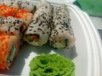 Рис, нори, снежный краб, сыр креметте, огурец, икра масага.