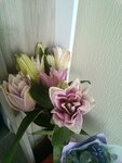 Мне были нужны лилии, и здесь они стоили несопоставимо ниже, чем где-то. Бутоны нераспустившиеся и недораспустившиеся. То есть, стоять будут долго. Не удивлюсь, если и недели 2-3. Также купил маленький букет из гиацинтов. Тоже, соцветия ещё неразвернутые в основном. В общем, мне очень понравилось. Доставка бесплатная, т к. в совокупности вышло 4500. Это при том, что было 5 лилий. В других местах только лилии обошлись бы тысяч в 5 - мониторил рынок до покупки. Дополню. Тут пишут, что привозят не то, что на фото. Есть такое. Для меня не критично, тем более, что я звонил, и мне сказали, да лилии другие. Да и ладно. Это были лилии, 80 см, с крупными бутонами. Цвет, да не белый, не классический. Розовые или бело-розовые (на фото видно). Но думаю, моей тете понравится.