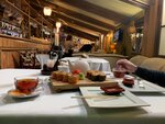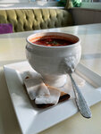 Очень вкусное хачапури и грибной суп, фруктовый чай. Приготовили все относительно быстро. Хорошее кафе для обеда, если вы направляетесь в Петергоф. Цены приемлимые для Петергофа, паста с курицей и грибами 510₽. За обед на пятерых (у каждого по одному блюду и чай) отдали ~3500₽. Не понравилось только обслуживание, официант часто переспрашивал, что мы заказали, разлил суп. Ничего страшного, такое со всеми бывает. Но звезду сниму. Порадовала уборная. Есть пеленальный столик, стул для малышей, чтобы дотянуться до раковины, очень чисто.