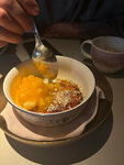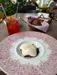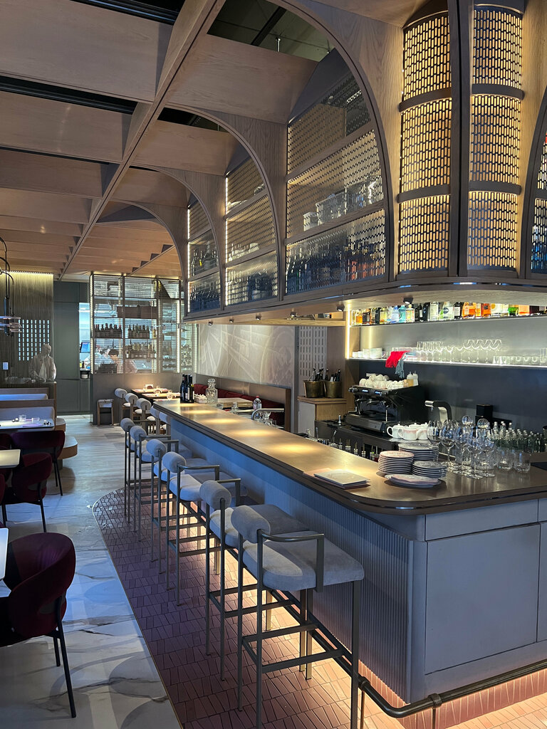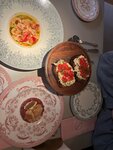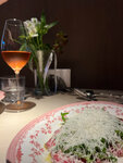 Один из лучших ресторанов, в которых я бывал за последнее время! На входе очень милые дамы, которые помогли нам раздеться , далее сквозь очень небольшой, но уютный зал , нас провели к столику, он в самом конце в углу . Честно , очень некомфортно, именно на этом месте, над ухом бесконечно жужжат официанты, потому что там стаф зона, я бы рекомендовал команде подумать как это можно улучшить. Видны огромные усилия, такое внимание к мелочам не может не радовать! Моей спутнице очень понравилось, все такое кукольное и розовое, прям кайф! Наш официант был просто на высоте, он был как рыба в воде, как уголь в огне, дальше сами придумаете. Он так классно нам рекомендовал , если мы сомневались он направлял, один из лучших сервисов , который я видел, браво команда! Что по еде? Севиче из креветок - классное , легкое и освещающее блюдо, необычное сочетание, единственное, блюдо бы заиграла еще более классными красками , если были бы полноценные креветки, а не малютки 8/10 Тар тар- не хватило нам совсем яркости, баланса вкуса, специй 5/10 Бриошь вроде с крабом- неплохая закуска на двоих, довольно вкусная 7,5/10 Ризотто с тар таром и муссом из сыра- афигенно, тюризотто вываренное в Гусом бульоне, слегка кислый тар тар и терпкий мусс, создает бурю вкуса во рту! Всем советую эту позицию 12/10 Гребешки- они что-то мне не запомнились, но помню что были оч вкусными 9/10 А еще крем брюле с манго-супер десерт, очень вкусно 9/10 Общее впечатление на 9,5. Классный антураж , кухня, сервис. Всем пацанам на свидание очень советую! Мы вернемся!
