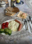 Из плюсов: отдалённое от центра, уединённое место, огромный загородный дом в охраняемом ДНТ, как дача или, скорее, как усадьба. Есть своя зелёная территория, за отдельную плату несколько мангалов и беседок, бассейн 600р/ч, сауна, настольный теннис, бильярд и камин. Есть интересные предметы интерьера. Из минусов: уставший ремонт и атмосфера девяностых годов, в номерах холодно, чайника нет, телевизор старый без возможности вставить флешку с кино, сервис от пожилой хозяйки, садовая мебель-дешёвый пластик прошлых лет. Указанный На Букинге номер телефона не существует, дозвониться не могли, а без звонка не пускала охрана. Завтрак скудный с растворимым кофе, хотя цена за номер как в хороших отелях, где тепло, есть сервис и шведский стол.
