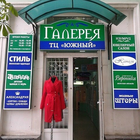 Удобное расположение - самый центр города, большой выбор верхней одежды, есть магазин с подарками и надувными шарами, есть магазин с авторскими картинами. Цены здесь очень приятные - доступные, так как здесь торгую сами хозяива помещений - нет аренды. Рядом парковка, вокруг много кафе и ресторанов, уютный Платовский скввер и Александровский парк. У "Галереи" удобный вход первый этаж ТЦ Южный.