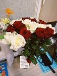 Состав: красные и бело-розовые розы, лента. Если что-то отсутствует в наличии флорист предложит альтернативный вариант.