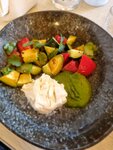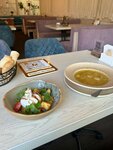 Зашли, заказали салат, основное блюдо, десерт. Салат и основное блюдо принесли быстро. Десерт официант забыл 🤡. Принес ещё через 40 минут пустого ожидания и к тому же холодный. К сервису огромные вопросы, персонал спит на ходу и бьёт постоянно посуду у барной стойки. Посадили нас у стены за темный убогий столик, хотя были нормальные свободные места. Официант порекомендовал фруктовый абрикосовый чай, не берите его ни в коем у случае, это просто разведённая в воде глюкоза, пить невозможно, вкус мерзкий. Впечатления от визита негативные. К посещению крайне не рекомендую.