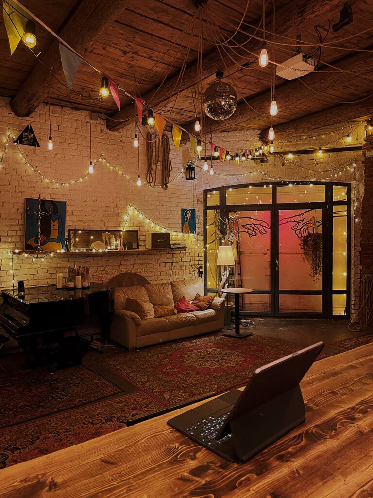 супер место в центре за разумные деньги с приятным и комфортным общением и условиями! делала тут вечеринку после свадьбы и организовывала корпоратив! со всем помогали и шли на встречу. можно продлить часы, написав в мессенджере и оплатить позже. включена уборка после (супер важная история), посуда и бокалы, проектор, колонки. есть пианино и диско шар). советуют кейтеринг и бармена (их рекомендациями пользовалась на свадьбе: все отлично). удобно, что гараж внутри двора, можно пошуметь, но никому не мешаешь и тебе никто не мешает. нет незнакомых людей и других вечеринок рядом) камерное, приятное место, которое уже украшено, со своей атмосферой. люблю ребят, буду приходить с вечеринками еще)