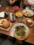 Местечко - просто класс, еда очень вкусная 🔥 брали на компанию много всего, пробовали: сырный суп в хлебе, тыквенный суп с креветками, салат со свининой и грибами темпура, салат гриль с лососем, жульен из мидий, рыбу с кисло-сладким соусом, томленую говядину с пюре - всё супер 🔝 Подача быстрая, официанты приветливые, работают оперативно, сам интерьер заведения тоже приятный, диванчики со столиками удобны на компанию 👍🏼 В общем, приехала из гастрономической столицы (н.новгород) и осталась супер довольна, 10/10 ❤️