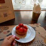 Пирожное картошка вкусное плотное, с орехами. Чай за 300 р. в чайничке 300 мл тоже понравился, ароматный и не "жидкий", а вот сендвич из 2х кусков черного хлеба с авокадо и лососем не понравился, много толстого зернового плотного хлеба, маленький кусочек лосося, подсохшая намазка, а соуса из авокадо слишком много. Не рекомендую.