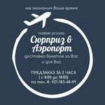 «Сюрприз в аэропорт»Доставка цветов к назначенному времени,заказ за два часа.Сюрприз для прилетающих-можем встретить,подарить цветы или вкусный презент.Все оговаривается индивидуально.Доставка 400 руб+ стоимость выбранного букета или презента.