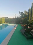 Обалденное место! Хозяйка очень чистоплотная, поэтому и номера и территория идеальные, везде уютно и со вкусом! Террасы у номеров со столиками, сидишь и смотришь на голубой бассейн и просто море цветов (розы, пионы, лилии, лаванда и др) и сад с фруктами! Инжиром так вообще закармливают🙈Вечером подсветка! Лежаки, павлины, беседка! До моря идти минут 15-20. Зато море прозрачное и белый песок! Хозяева безумно гостеприимные, доброжелательные и веселые!Валя очень вкусно готовит, Сергей вино делает и шашлыки! Сергей смотрит за территорией, все ли в порядке и на любые просьбы быстро реагирует. Рекомендую однозначно! А еще, когда идешь к морю, можно зайти на солевое грязевое озеро для лечения! Люди ради него туда едут, и мы часто сидели в нем! Погода спокойная, без резких перепадов, вообщем по всем направлениям у них классно! Магазинов правда рядом мало, но остановка рядом и с Сергеем всегда можно обо всем договориться! Да, и главное, можно с животными!