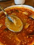 Были с девушкой, заказали том-ям и бургер Казанова. Бургер более менее, сытный, мяса достаточно, но том-ям ужасный. Жирный бульон, креветки раскуроченые, как будто их кинули в мясорубку, а потом положили в суп. Грибы нарезаны так, будто их нужно есть руками. Многие ингридиенты недоваренные, и хрустят.