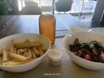 Честно говоря, очень разочарована. Брала салат с жаренами баклажанами из грузинской кухни и картофель фри с соусом дор-блю. Ну и компот. Из всего перечисленного более менее съедобной была картошка (приготовлена хорошо и соли как по мне идеальное количество) и компот. Салат ледяной, похоже сразу из холодильника, помидоры невкусные, спасала кинза, баклажаны почти не чувствовались, но самый жир это масло. Оно конечно ароматное, но в нем буквально плавали овощи. К сожалению даром это не прошло, по дороге домой замутило и до сих пор мутит, хотя прошло более двух часов. Соус дор блю даже не рискнула попробовать. Когда открыла крышку увидела мутную белую воду, отнесла обратно, мне сказали сто всё нормально, это конденсат из-за холодильника, но вот лично я такое впервые вижу. Мне просто слили эту жижу, однако лучше не стало: соус весь комковатый, похож на просроченную сметану. Ооидор-блю там не было ничего. В общем доела только картошку и допила компот. Больше сюда скорее всего не пойду. На картинках блюда выглядят красиво, но по факту и по вкусу такое себе удовольствие.