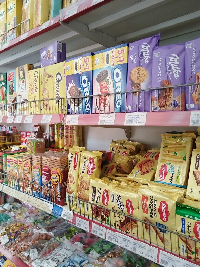Магазин у дома , ассортимент продуктов «на скорую руку» полуфабрикаты ,сосиски/колбасы/сыры ,овощи фрукты,молочка и много сладостей , есть небольшой стеллаж с бытовой химией и дешевыми брендами (которыми вообще нельзя кормить) кормов для животных. Алкоголики часто там собираются прям у порога. Приветливость персонала зависит полностью настроения.