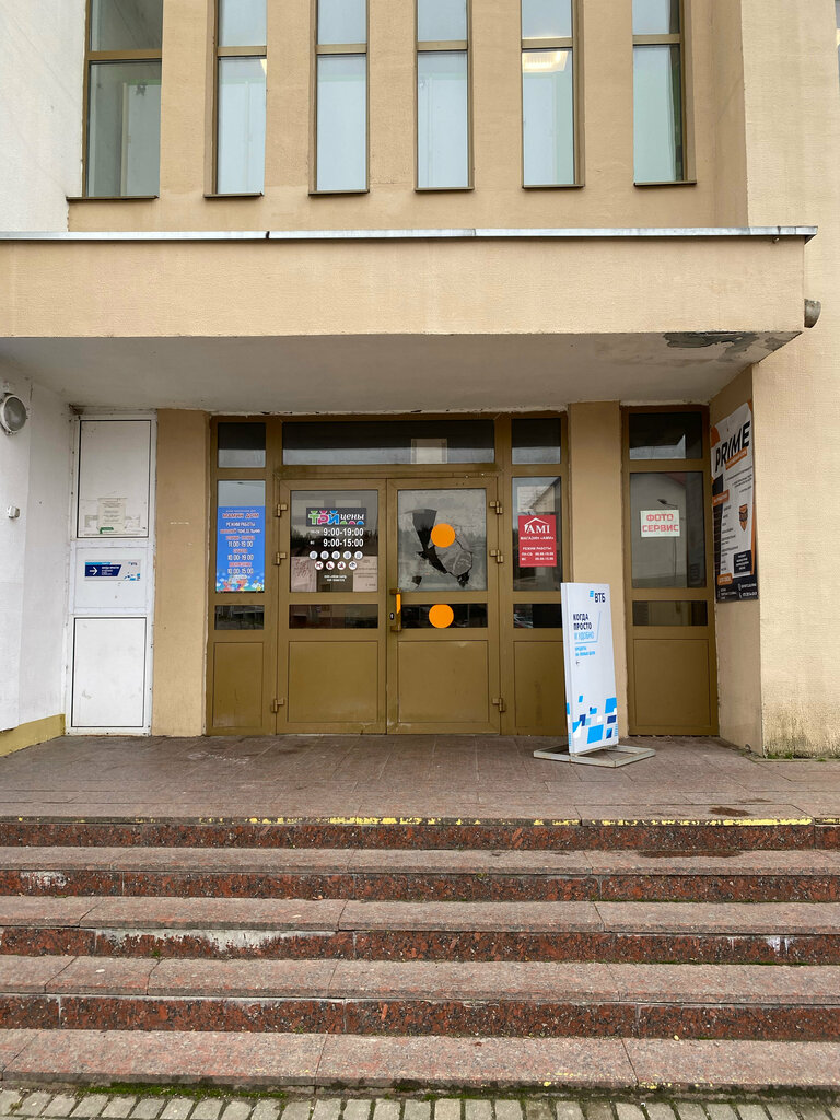 We will not describe the atmosphere of the Soviet past and the outdated interiors of half-empty halls with bored salesmen, it's all so clear. But the fact of absolute indifference, indifference and irresponsibility of the administration of this institution is obvious. The glass of the main entrance door is ground up, creepy sharp and large pieces are dangling on my word of honor, and people are walking back and forth all the time. It's already lunch and no one cares, no one can be found, no one is going to solve this issue! This can also lead to tragic consequences. It's just a nightmare! I have never seen such an outrage anywhere!