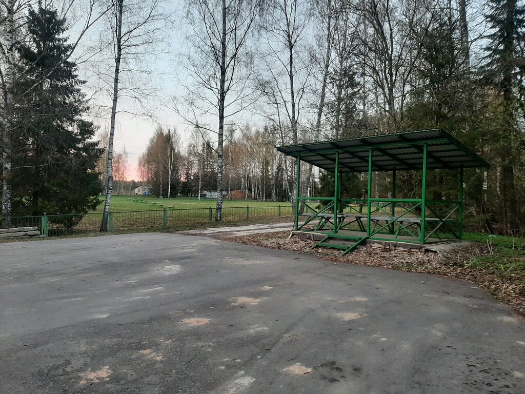 Беседка у ворот лагеря "Синие дали". В ней встречают и ждут родителей дети находящиеся в этом оздоровительном центре.