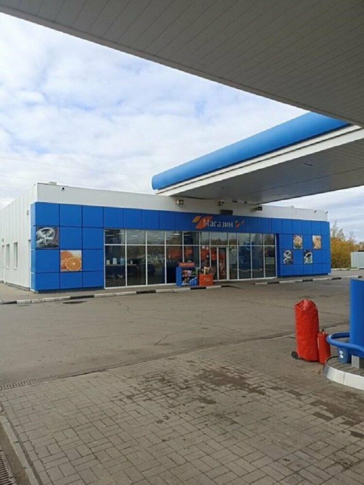 Любимая заправка в Рыбинске. ✅ Просторная парковка. ✅ 8 заправочных колонок ✅ Два постоянно работающих туалета. ✅💳 Круглосуточно работающий банкомат ГАЗПРОМБАНКА (комиссии за пополнение и снятие нет. Только комиссия вашего банка) ✅ Неплохой кофе и традиционно большой ассортимент "еды на быстрый перекус" ✅ Очень удобная локация самой заправки...и на выезд на окружную...и на Углич...и в центр.