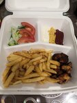 Дорогой владелец, обратите внимание на попцию вашего бокса, мясо сухое, как кот наплакал. Скидываю фото, пусть вам будет стыдно. Уж лучше лишние 100 мемтров пройти до Гиробара, чем брать у вас ещё и дороже чем там.