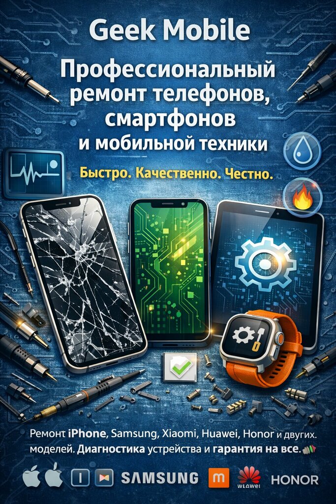 Сервисный центр Geek Mobile предлагает профессиональный ремонт телефонов и мобильных устройств с гарантией качества и прозрачными условиями ...