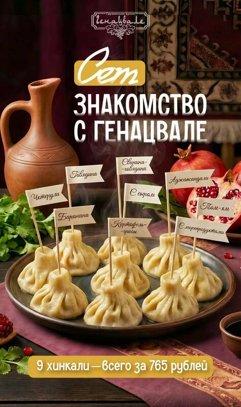 Сет "Знакомство с Генацвале". 9 видов хинкали за 765 рублей