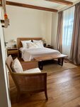 Из плюсов: Номер симпатичный, комфортный и светлый! Косметика хорошая (Локситан). Приветливые администраторы. Завтраки вкусные, выбор не большой. В меню всего одна мясная и одна рыбная позиция. Предоставляется три позиции с возможностью выбора: основное, десерт и напиток. Завтрак строго по расписанию, благо время можно выбрать накануне. Попытались попасть на полчаса пораньше, но ни водитель, ни кухня не были готовы нас принять. Пришлось ждать. Не понравилось: В номере сильно скрипит пол и сильная слышимость из общего коридора. Номер был подготовлен не очень хорошо, повсюду черные длинные волосы, особенно в ванной. Во время завтрака вместо фоновой музыки, ор птиц. Именно ор, а не пение. Если кто-то знает как работают акустические отпугиватели птиц, то вот это самое оно. Попросили поменять плейлист, нам отказали по причине: «плейлист не меняется». Попросила позвать менеджера, нам сказали, что она занята, хотя она стояла прямо позади нас. Мне ничего не стоило развернуться и обратиться к ней лично. Юлия также ответила, что плейлист неизменен ни при каких обстоятельствах. Это к слову о клиентоориентированности. Цель нашего визита была винодельня. Предполагали, что отель будет на территории. Как оказалось, до него 1,5 км по не ухоженным и не освещенным улицам. Здесь же, кстати, находится ресторан, где проходят завтраки. Здание отеля расположено на главной дороге поселка, трафик очень активный, достаточно шумно. Есть водитель, он ездит только по предварительной договоренности. Никакие спонтанности не приветствуются. Территории у отеля нет. Территория винодельни тоже не большая, особо не разгуляешься. в самом поселке делать нечего. Учитывая здешние строгие правила, отсутствие лояльности к гостям и слабо развитую инфраструктуру, сюда я бы не хотела вернуться.