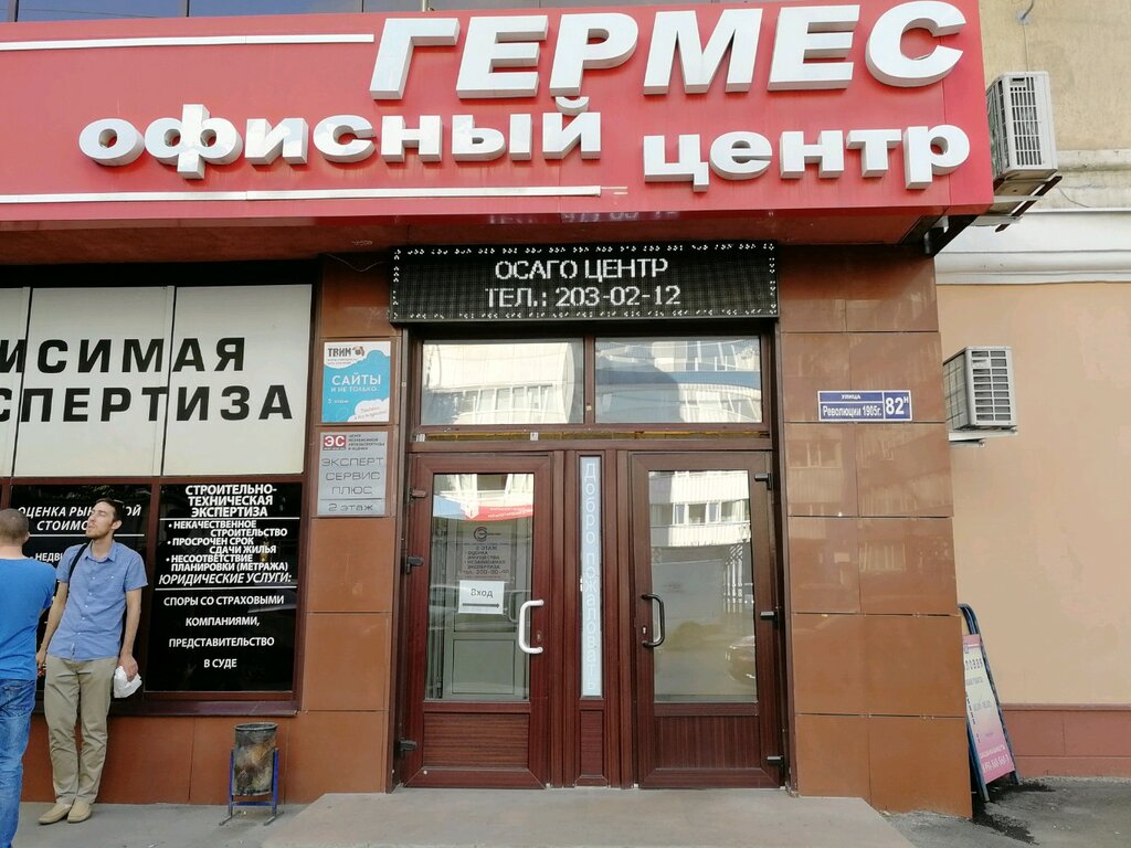 Офисный центр по адресу Ул.Революции 1905 года 82н. На первом этаже столовая, в здании располагается автоэкспертиза, юристы, веб студия, видео студия, коллцентры и прочее.