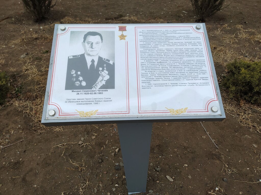 Memorial plaque, foundation stone Герою Советского Союза М.С. Чеченеву, Astrahan, photo