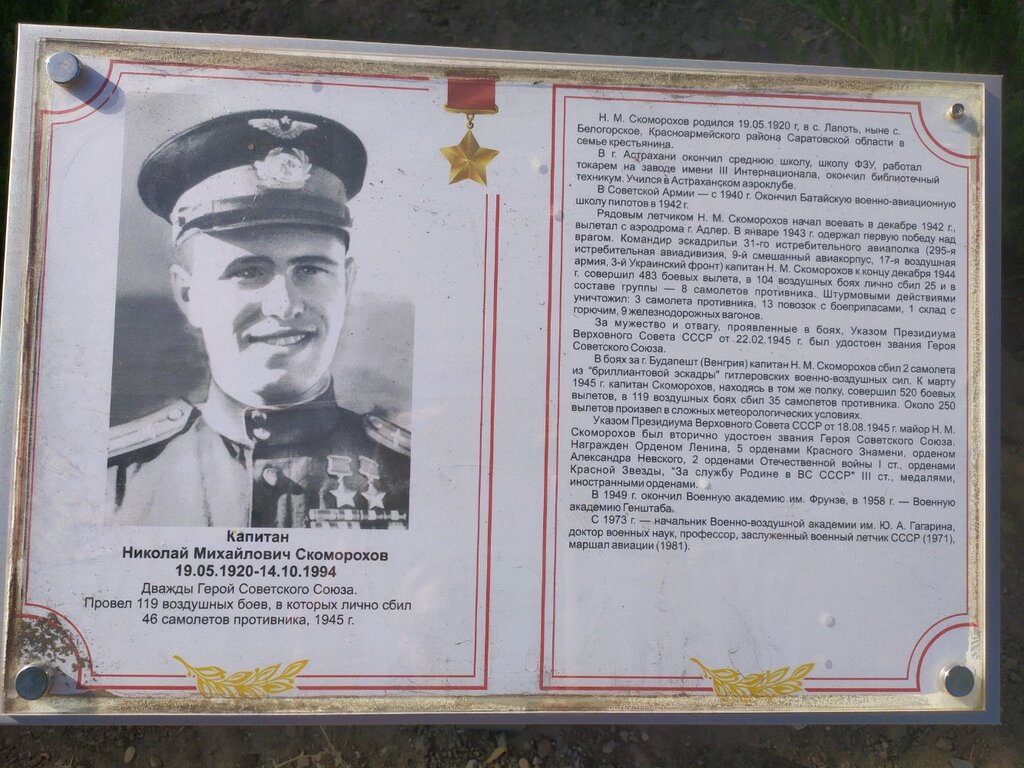 Memorial plaque, foundation stone Герою Советского Союза Н.М. Скоморохову, Astrahan, photo