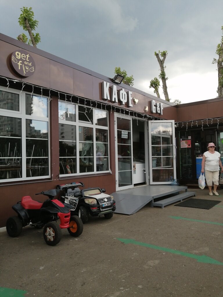 Кафе «Get & Fly» на Ангарских прудах всегда оставляет у меня положительные впечатления, преимущественно своим гостеприимным отношением. Блюда на мангале очень нравятся. Никогда ничего не передержано. Всегда всё «С пылу - с жару». Да! Иногда приходится подождать (прочитав отзывы других посетителей, они этим не очень довольны), но тогда, это говорит лишь о том, что здесь есть спрос на тот же самый ассортимент (ведь всех посетителей необходимо обслужить). Плюс очень приятно проводить время, любуясь прудом. И конечно же, при этом наслаждаться вкусным мороженным, чаем и прочим меню, которое предложили. В общем, очень уютное и комфортное место.