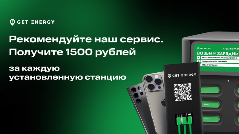 Сервис аренды зарядок Get Energy четыре года работает в Крыму. Теперь жители и гости полуострова могут арендовать зарядки Get Energy по дос...