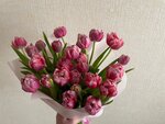 Завлекли красивыми фото в объявлении на странице группы вк. По факту привезли тюльпаны, не соответствующие тем фото. В букет положили много дефектных: маленьких и вялых. Даже сам букет ровно собрать не смогли, тюльпаны смотрят куда зря и на разной высоте. Данные тюльпаны обошлись 100₽ за штуку плюс доставка. Даже дарить не буду такие. Прикрепил фото букета, в конце будут их рекламные фото для сравнения.
