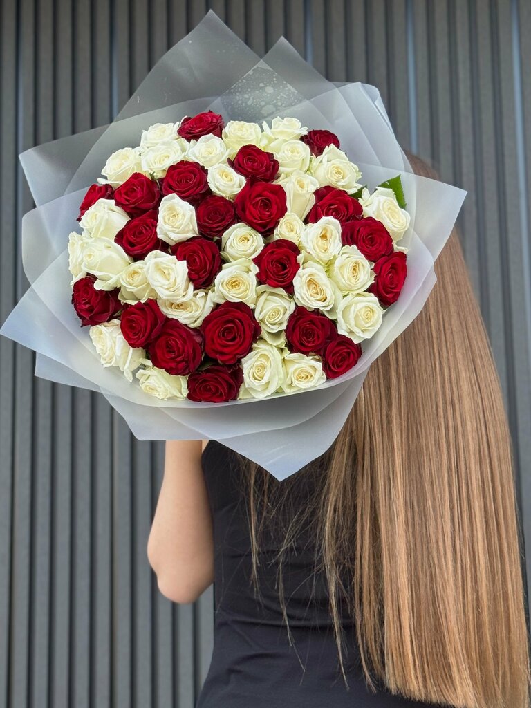 101 роза "Красно-Белый Микс"