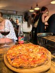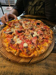 Delicious crunchy pizza Fast and pleasant service Did you like the pizza with mushrooms And I also like that they tell and help with wine One pizza for two is enough with a head) A pleasant and cozy place, although the tables are often occupied :)but this is just an indicator that the place is good Have you tried orange wine)