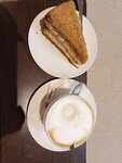 Кафе рядом с отелем, решила зайти, с виду показался уютным. Будний день, ранний вечер, посетителей два с половиной человека, приятная музыка, достаточно вкусные блюда. Есть несколько но и они, пожалуй, повлияют на мое решение зайти еще раз. 1. Сквозной проход из кондитерской, через который постоянно заходили девушки, дамы в спец одежде и проходили на второй этаж, что то выясняя громко и на фоне тишины кафе и спокойной музыки это было ровно как в фильме «служебный роман» когда в кабинет пришла ревизионная комиссия, беспородонность увы и ах… 2. А потом пришла «тетя Маша» и стала махать тряпкой, я сначала даже оторопела, ну реально как будто никого в кафе нет, она с кем то громко разговаривает и моет пол, а вы тут еще и расселись со своей едой. Вопросов к кухне нет, салат с грушей великолепный, вежливая девочка официант, но «тетя Маша» и табор непонятного персонала оставил неизгладимое впечатление.