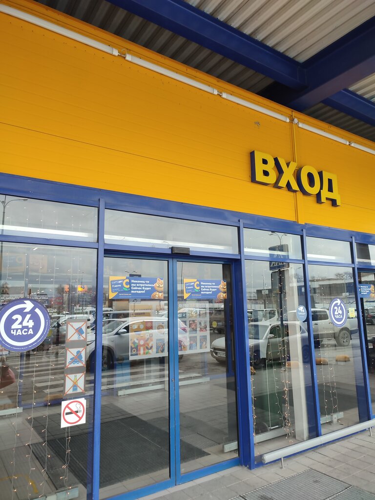Прекрасный магазин, очень большой, много выбора, внутри есть ростикс, туалет и пару магазинчиков ( в основном суши/пицца и ТД) один минус: огромные очереди, несмотря на огромное количество касс включая кассы самообслуживания. Персонал добрый, приветливый и все такое.