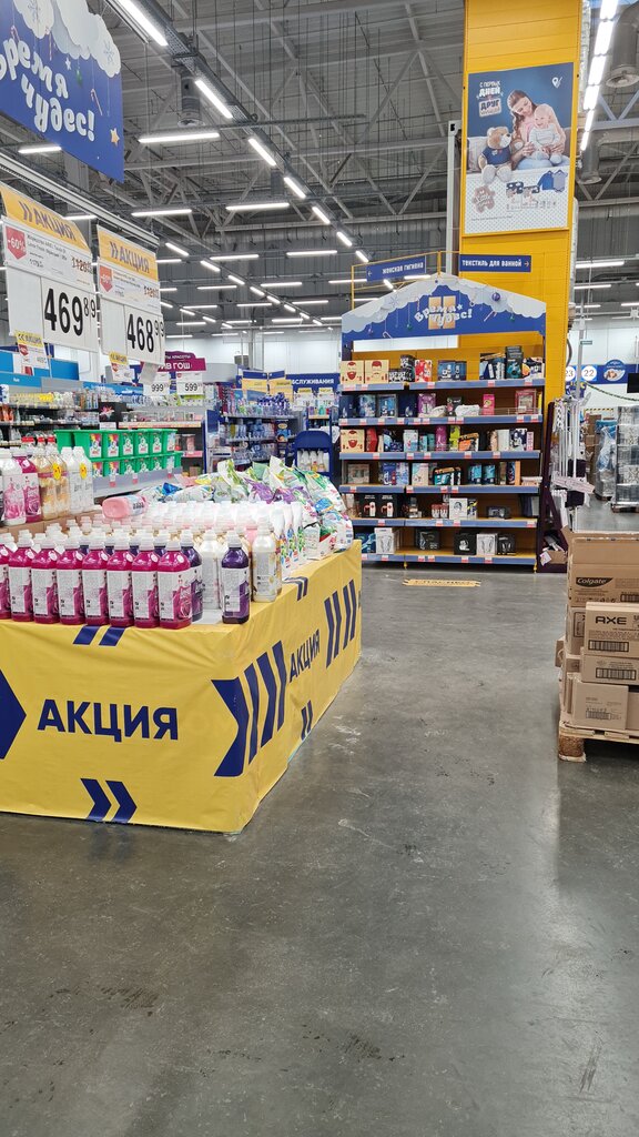 Общее впечатление: Положительное. Это классическая «Лента» — большой, шумный, со всем необходимым под одной крышей. Идеально для комплексной закупки продуктов и хозяйственных товаров на неделю вперед. Плюсы (+): 1. Огромный ассортимент. Здесь действительно есть всё: от свежих овощей и мяса до инструментов, одежды, посуды и косметики. Особенно радует собственный цех мясной и рыбной нарезки — качество всегда на уровне. 2. Собственный бренд «Выгодно!». Цены на продукты под этой маркой очень приятные, качество при этом не страдает. Отличная экономия на базовых товарах (макароны, крупы, молочка, заморозка). 3. Частые акции и скидки. Система скидок по карте «Лента» (теперь «Мой друг») работает отлично. Персональные предложения в приложении часто совпадают с тем, что я обычно покупаю. Акции «1+1=3» или скидки 20-50% на разные категории — постоянное явление. 4. Просторная территория и парковка. С парковкой проблем обычно нет, места много. В самом магазине широкие проходы, даже с большой тележкой легко маневрировать. 5. Удобное расположение. Для жителей Домодедово и окрестностей расположение на выезде/въезде в город очень удобное. Заскочить по дороге с работы — не проблема.