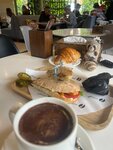 A coffee shop with a pleasant atmosphere and a good menu. Minus the ball just for asking me to make coffee and a croissant for my beloved separately. The coffee arrived almost immediately, and the croissant had to wait another 15 minutes, and eventually it got cold. They also brought croissant utensils with them, a fork and a spoon???, why a croissant spoon is unclear, it is logical that there should be a knife.