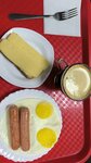 Остановился в гостинице Ока (хорошо). Утром решил сходить на завтрак в это кафе. Удобно, что никуда не надо идти. Завтрак удался. Яичница пожарена идеально. Сосиски вкусные. Бутер с маслом и сыром в тему. Кофе на 4. Цена на 5. Соотношение цена/вкус 5. Завтрак на фото 450 рублей. Персонал очень спокойный и вежливый. Завтрак был готов меньше, чем за 10 минут.
