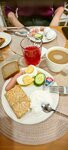 Хорошая гостиница, находится на 3-м этаже здания. В номере чисто, вид из окна красивый. На столе лежала записка с именем и микро шоколадка, приятно! Завтрак по системе шведский стол с 7 до 10, каша, нарезка сырная и колбасная, овощная, яйца, пара основных блюд и сладкое. Напитки тоже есть. Завтрак понравился очень. Есть большие зонты, для пользования гостям. В общем, рекомендую!