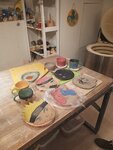 Неплохое местечко, вежливые девушки все объясняли и помогали в изготовлении посуды. Единственный момент, можно было бы фенов для сушки изделий иметь больше, так как пришлось ждать, пока другие досушат свои изделия, а потом что-то делать (20 мин потеряла). Также там есть комната, чтобы за столом посидеть, отметить какой-либо праздник. В общем, хорошее место, но есть над чем работать)