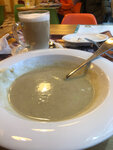 Очень милое заведение. Персонал улыбчивый. Заказал блинчики с мясом и с сыром и ветчиной и сметаной, а также суп-пюре из шампиньонов. А, ну и чай. Вышло 500 рублей. Порции очень приличные. Суп вообще пушка! Очень сливочный. Моя благодарность повару