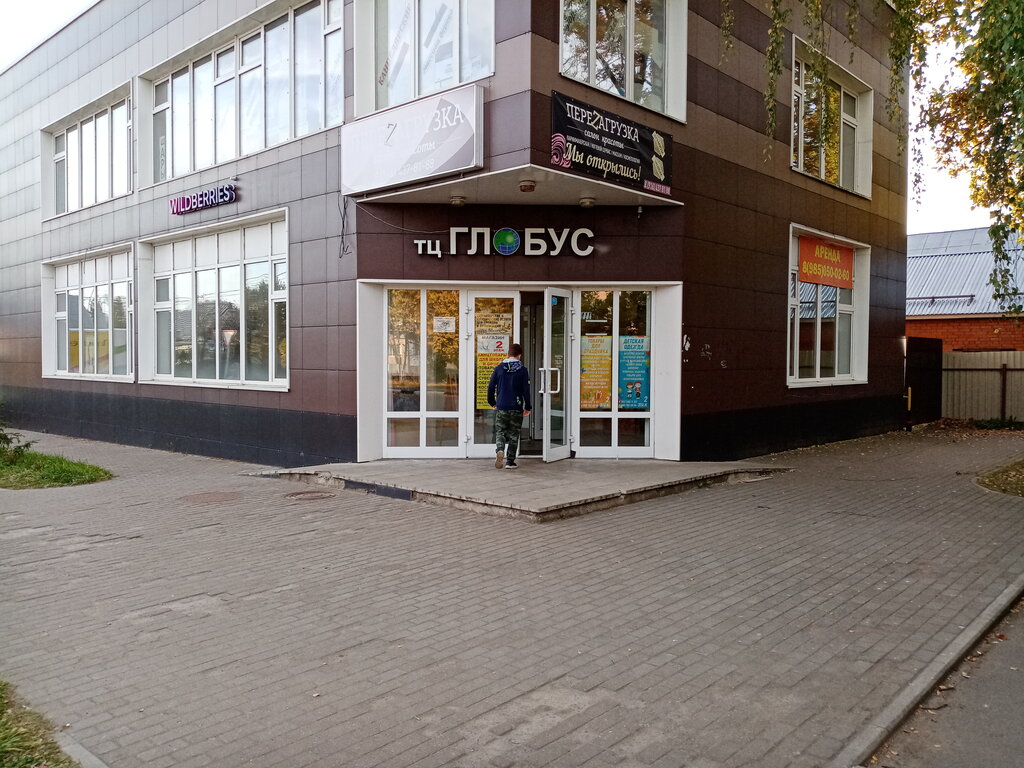 В глобусе есть магазин канцелярии и там дороговато, есть очки виртуальной реальности, магазин для праздника,есть пункт выдачи Вайлдберриз, на первом этаже кофейня, семейный клуб, и пункт выдачи заказов ozon