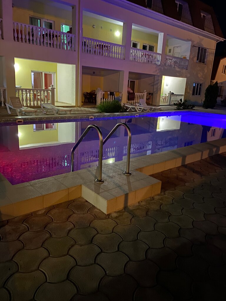 Мне кажется самый гостеприимный и самый удобный и чистый гостевой дом в Поповке, это лично мое мнение, обошли всю поковку и видели другие.... Хозяюшки-таки все время копошились убирались, постоянно суетились и убирались на территории, очень уютно, есть небольшая детская площадка: песочница, качели, домик, настольный футбол и настольный хоккей, а также есть бассейн, который постоянно чистят, там две глубины, для малышей и взрослых. Девушки очень вкусно готовят. Расположен в удобном месте, рядом магазины и кафешки. Ещё, что подкупает, очень хорошая шумоизоляция в номерах.