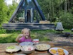 Прекрасно впервые отдохнули в подобного формата месте. Опасалась, что ребёнку скучно будет, но нет. Ребёнок хочет еще вернуться. Отличное расположение домиков, соседей даже не видели. Душа Глуши Настя приготовила отличные завтраки, а для ребенка адаптировала обед и ужин. Провести вечер у костра с любимыми -бесценно, а в купели с бокалом шампанского смотреть на звезды -восторг. Из недостатков-невозможность проветрить на втором этаже домика-спать было душно. Но все равно отдых был прекрасным.